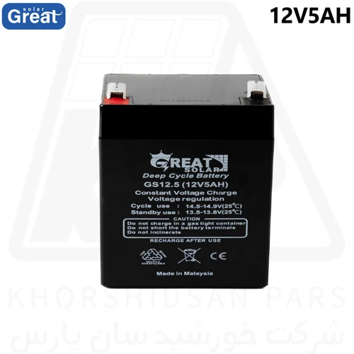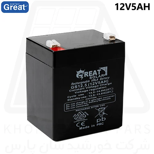 باتری خورشیدی ۵ آمپر ساعت گریت سولار، با بهرهگیری از فناوری پیشرفته و ساختاری مقاوم با گارانتی و مشخصات ویژه زیر ارائه میشود: