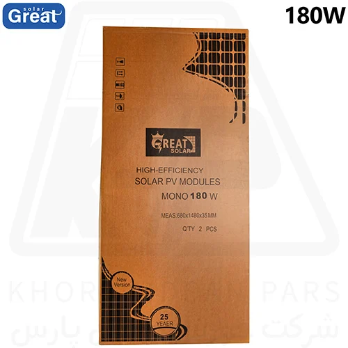 پنل خورشیدی 180 وات گریت سولار، با بهرهگیری از فناوری پیشرفته و ساختاری مقاوم طبق شرایط استاندارد و گارانتیهای ویژه زیر ارائه میشود: